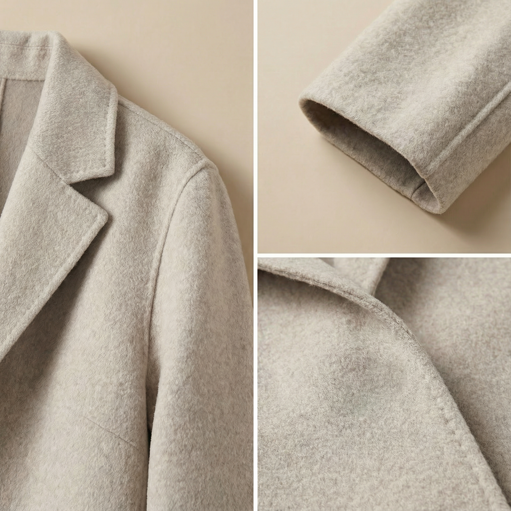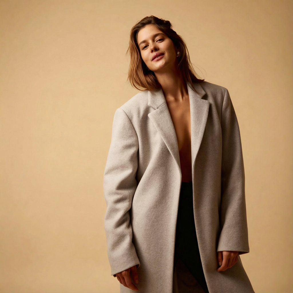 Fabriqué dans un mélange doux, ce manteau offre un équilibre idéal entre chaleur et légèreté. Il reste agréable à porter toute la journée sans sensation de lourdeur ni rigidité.